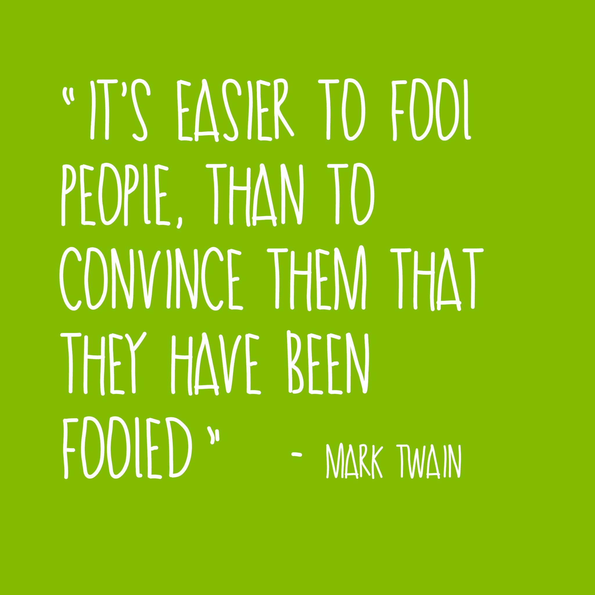 Source: quotefancy.com- Mark Twain Quote: “It's Easier To Fool People Than To Convince Them That They Have Been